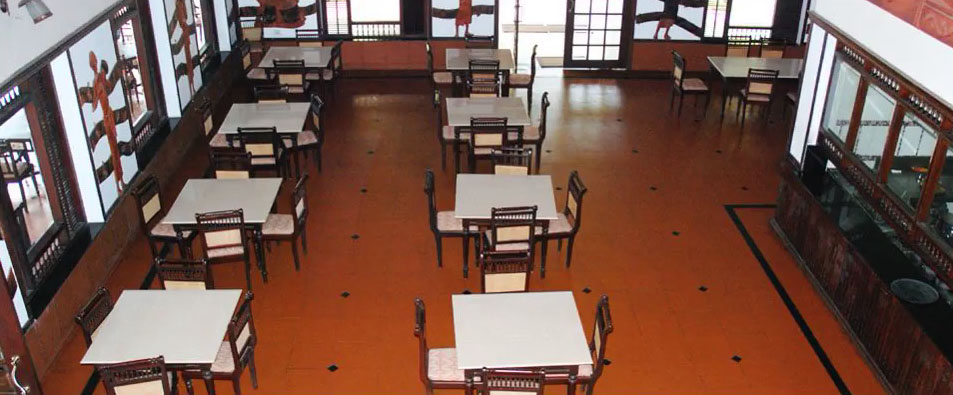 It bears an extravagant restaurant that delivers pure taste and hues of south, north and kuttanad preparations. Seafood, fresh and backwater catching, classy Chinese and enthusiastic continental. The much praised traditional kerala delicacies rich in spices the Syrian Christian lunch, Syrian Duck roast, Chicken stew, Duck mappas, Karimeen pollichathu, Karimeen molly, the Crab and Prawn varathathu. The restaurant with a view into the kitchen has 100 covers with a cultural effect of our traditional kerala.